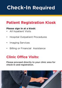 Patients arriving for inpatient care, outpatient hospital services, imaging appointments, or with billing questions will now be able to check in using a simple kiosk. Once checked in, QLess will send text message updates to the patient’s mobile phone, letting them know when it’s time to begin registration.