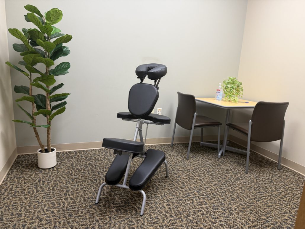 - 15-minute chair massage performed by our certified therapists